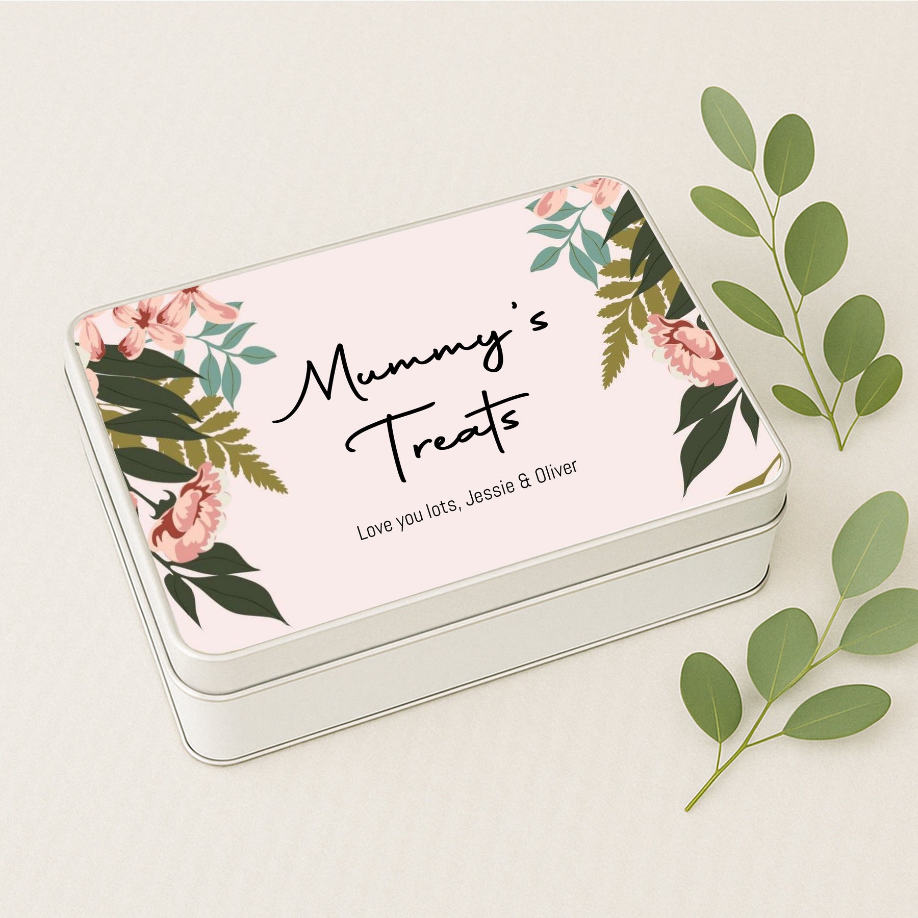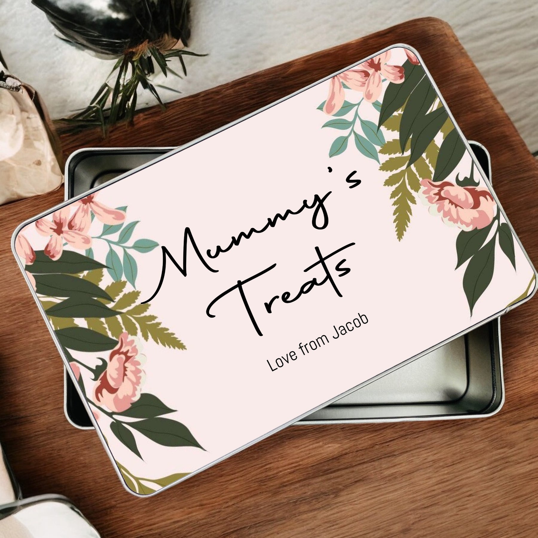 Treat Mum to something truly special with this beautiful Personalised Mummy’s Treat Tin, adorned with a delicate floral design and your custom message. Whether it’s filled with her favourite chocolates, biscuits, or hidden goodies, this stylish tin is the perfect way to show love from the kids in a thoughtful, heartfelt way.