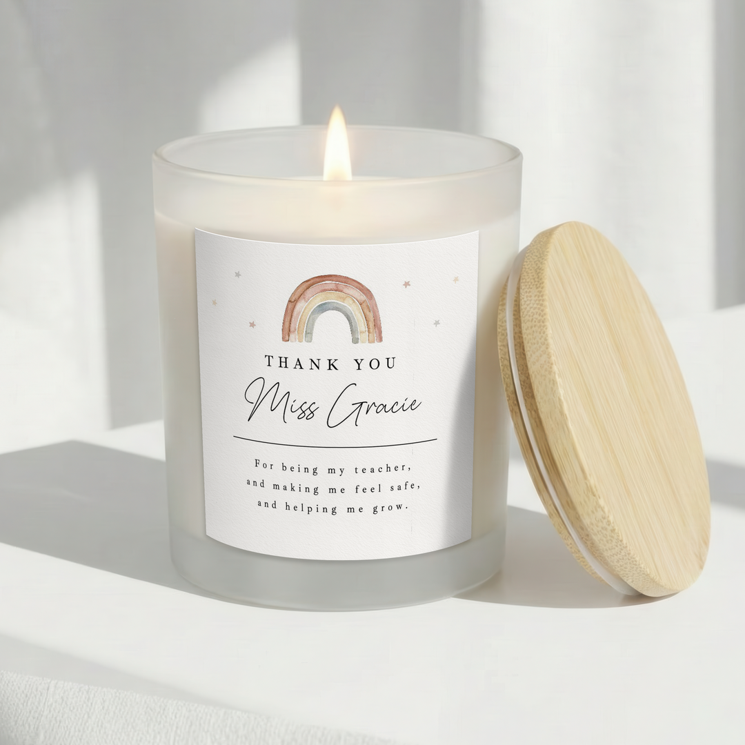 Personalised Rainbow Thank You Teacher Gift Candle & Box