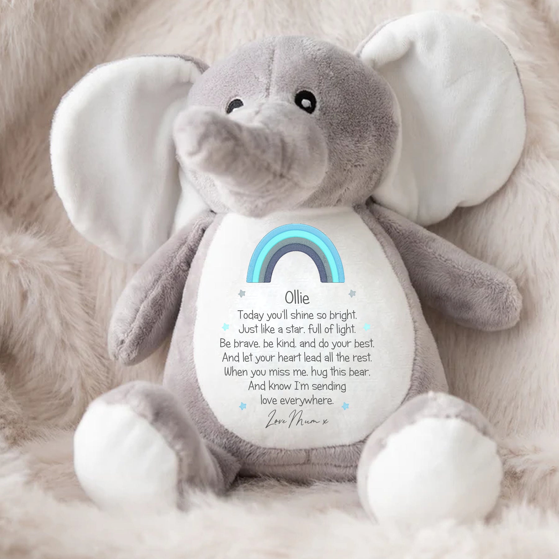 Featuring a sweet personalised name, a sweet message, and an adorable design, this plush bunny becomes a meaningful keepsake your child will cherish for years to come. Whether it’s their very first day at nursery, preschool, or reception, this comforting teddy is a lovely way to show support and encourage confidence as they begin their exciting journey.