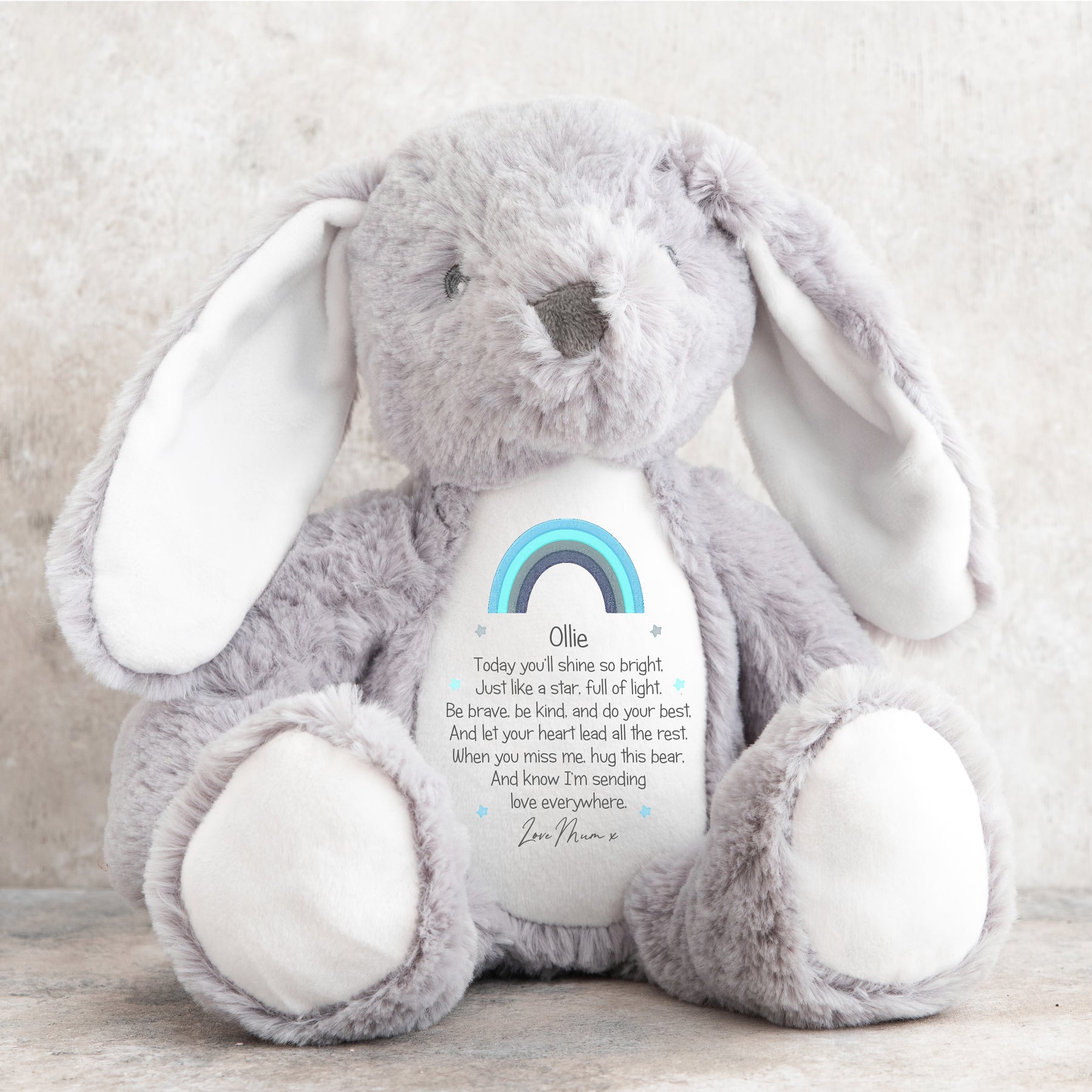 Mark the big milestone of starting school or nursery with our Personalised First Day of School Bunny – a comforting and thoughtful gift to help little ones feel supported and brave on their big day! Soft, cuddly, and beautifully printed, this bunny is a perfect companion to ease those first-day jitters.