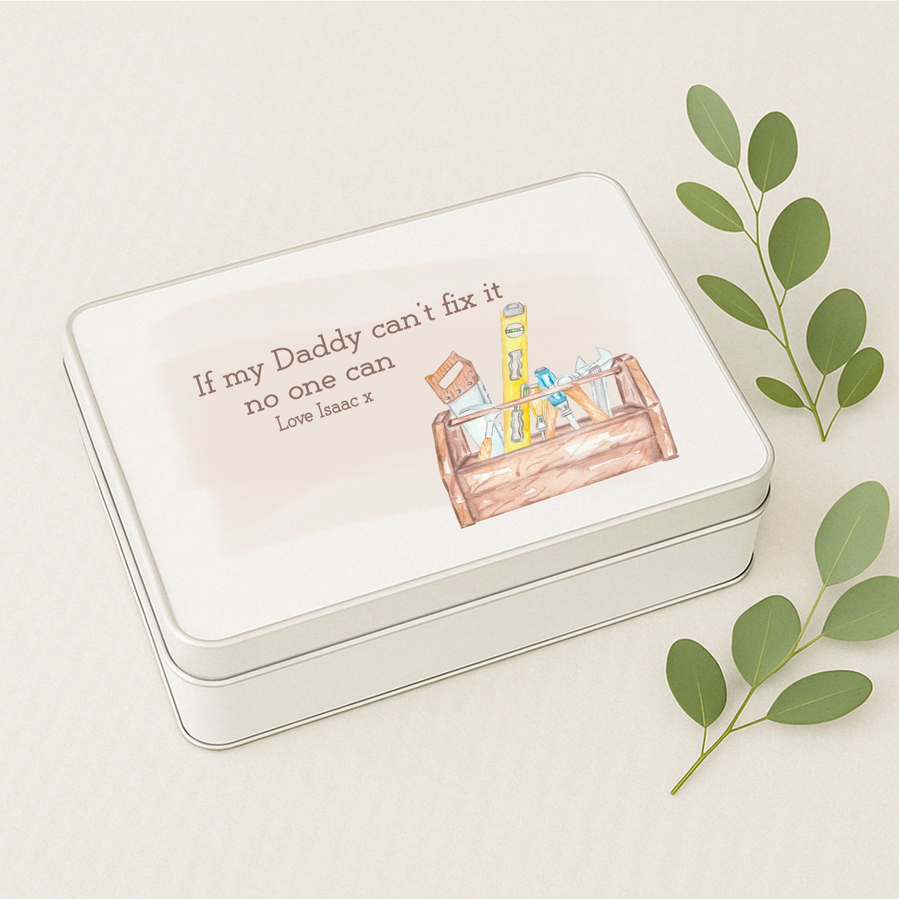 Every dad has that one drawer — or shelf, or garage corner — full of mysterious screws, loose batteries, and random tools. Now he can keep it all in one place with this Personalised Bits & Bobs Tin. Decorated with hand-drawn tool illustrations, this light-hearted yet functional storage tin is ideal for the DIY enthusiast or handyman in your life. A clever and charming personalised gift for him, it’s perfect for keeping all those essential bits and bobs neatly stored in true dad style.