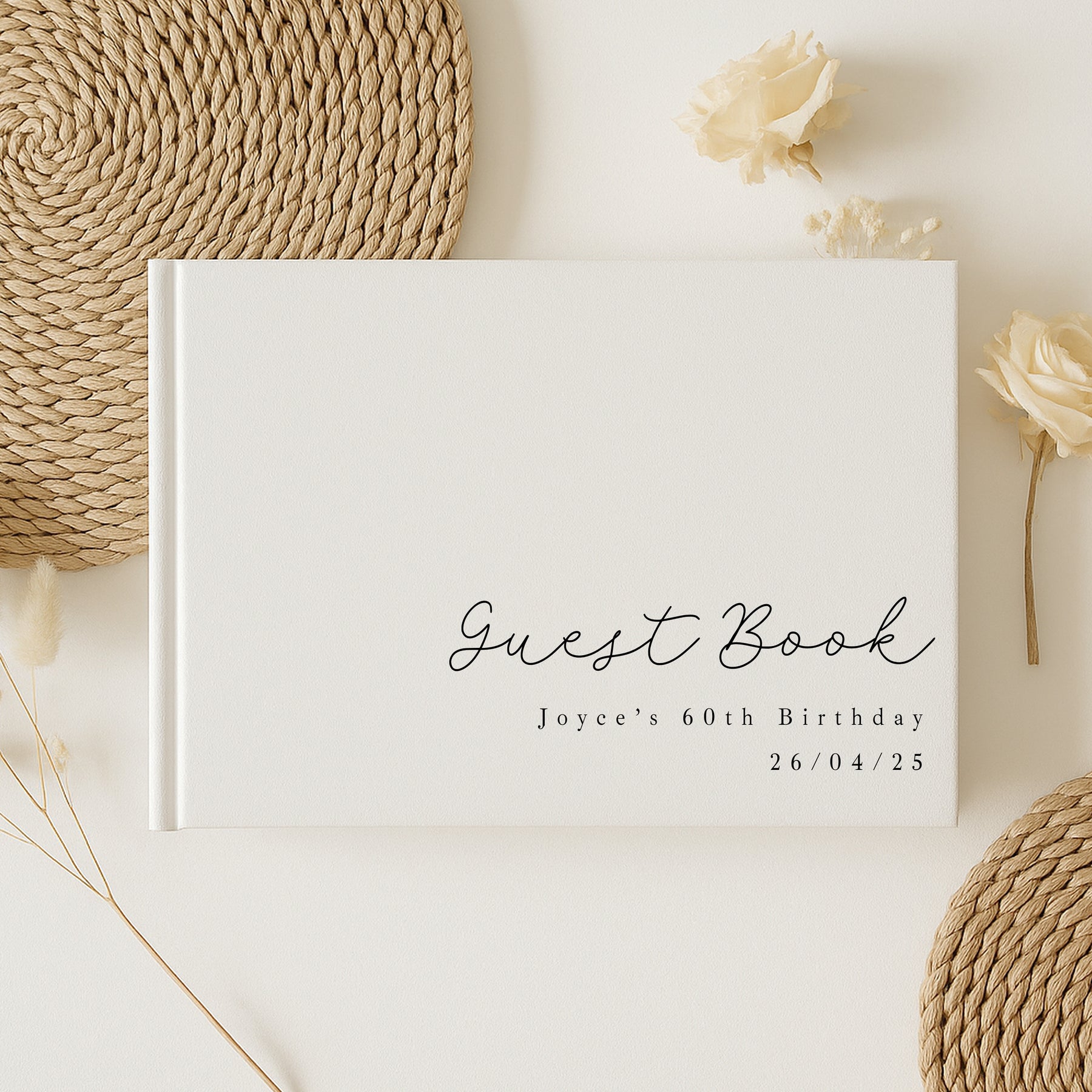 Capture the love and joy of your special day with this elegant, personalised birthday guest book. Measuring 23cm x 17.5cm, this timeless keepsake features 80 lined pages—ideal for your guests to leave heartfelt messages, memories, and well-wishes for the birthday boy/girl.