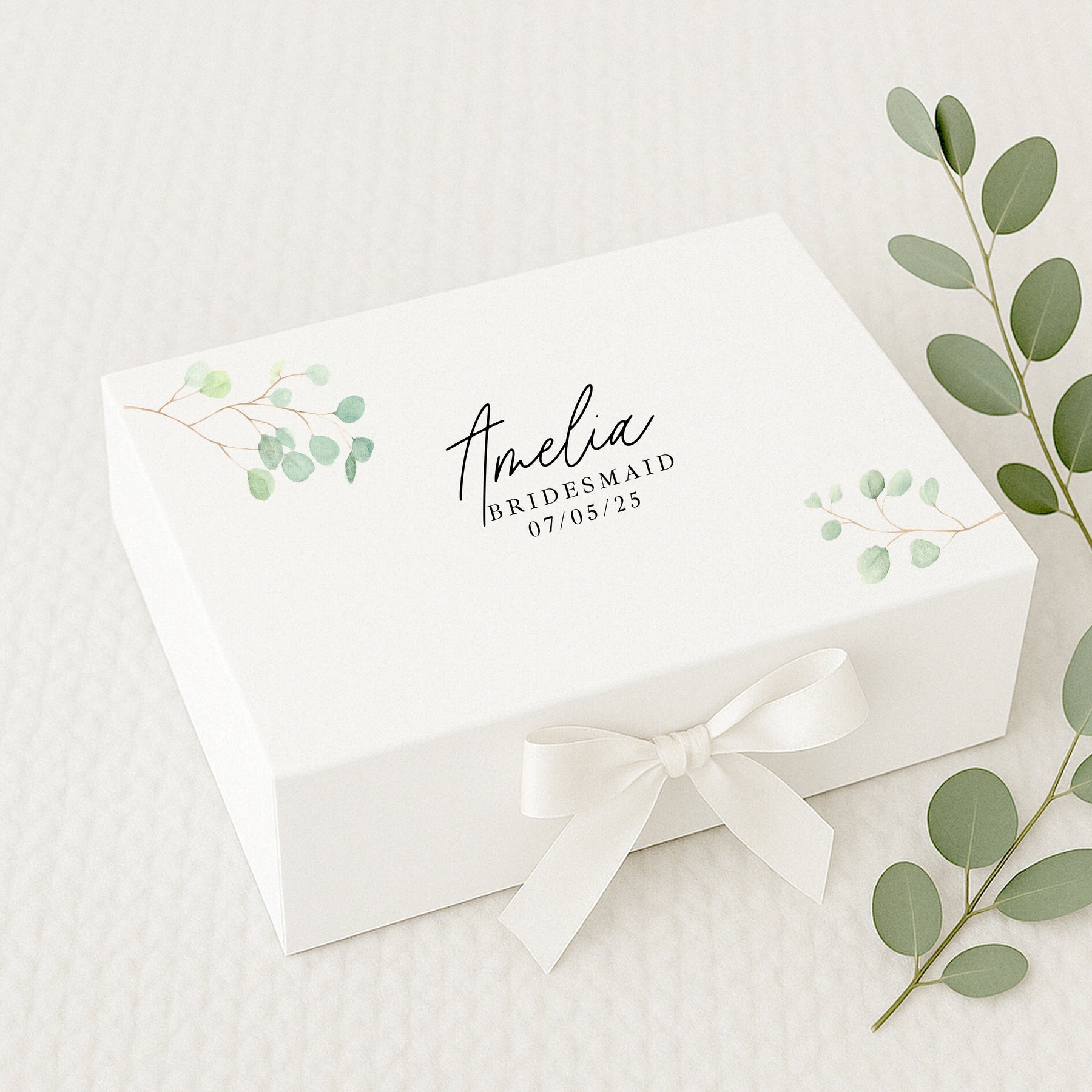 Celebrate your closest friends on your special day with our Personalised Bridesmaid Gift Boxes. Offered in Medium (22cm x 22.5cm x 6.5cm) and Large A4 Deep (33cm x 25cm x 11cm) sizes, each box can be customised with your chosen text. Designed to hold all the must-have items for your bridesmaids, they ship flat for easy delivery and assemble quickly before gifting. These gift boxes provide a sophisticated and personal way to invite your bridesmaids, setting a memorable tone for your wedding.