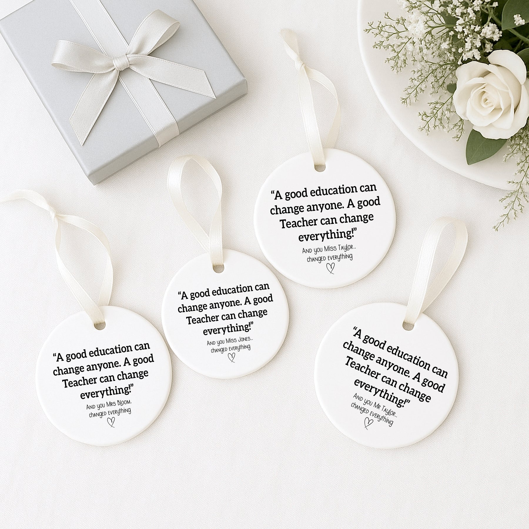 This 8cm Personalised Teacher Keepsake Ornament offers a thoughtful and elegant way to show appreciation for educators. Crafted with attention to detail, it can be customised to add a personal touch, making it a meaningful memento. Its compact size ensures it fits perfectly in any classroom or home display, serving as a lasting reminder of gratitude and respect for a teacher's dedication.
